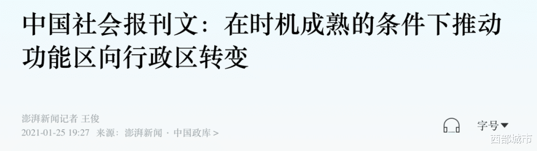 如2021年,中国社会报就刊文提出:在时机成熟的条件下推动功能区向行政区转变。