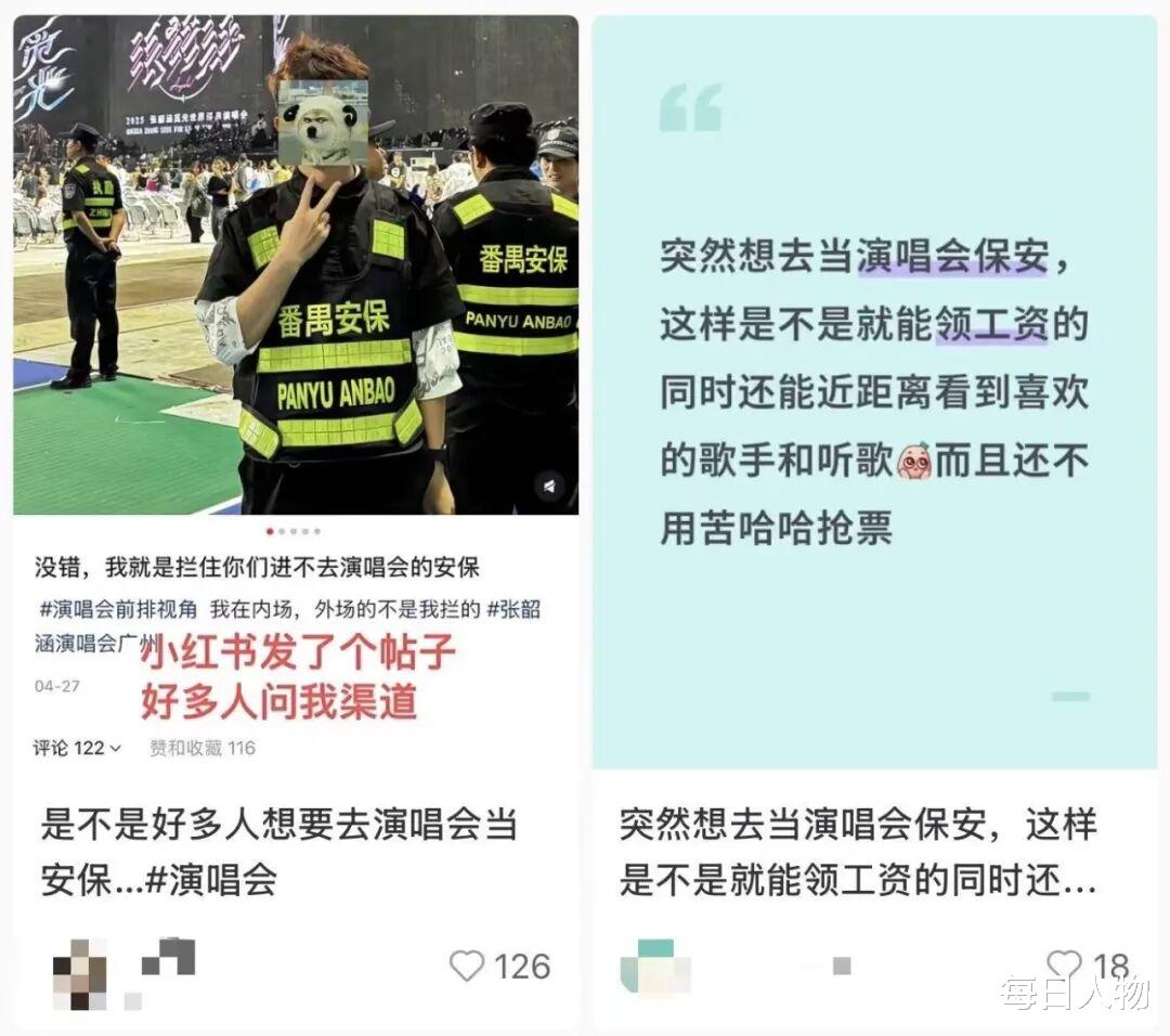 ▲ 社交媒体上有不少年轻人提出想去演唱会现场当保安。图 / 小红书截图