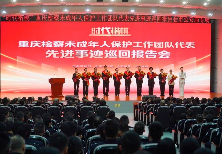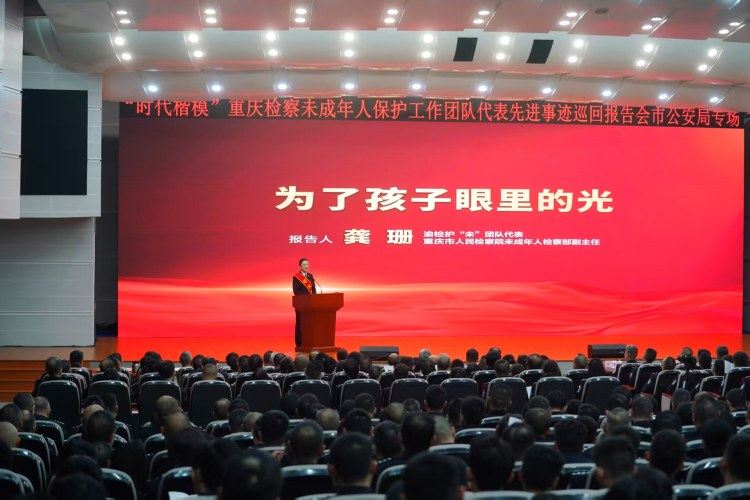 12月5日,“时代楷模”重庆检察未成年人保护工作团队代表先进事迹巡回报告会来到重庆市公安局。这一场诠释了过去21年里,如何通过“心系万家用爱释法”,实现“法安天下德润民心”的倾情讲述,引发了来自重庆市公安局各内设、直属机构科所和重庆警察学院共计600余人的情感共鸣。