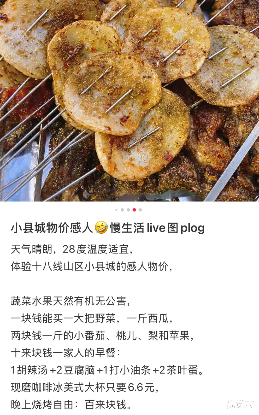 在大城市,100元几乎没什么购买力,而在小县城,可以买足够吃一个月的蔬菜,即便是现磨的冰美式,也足以喝到吐为止。