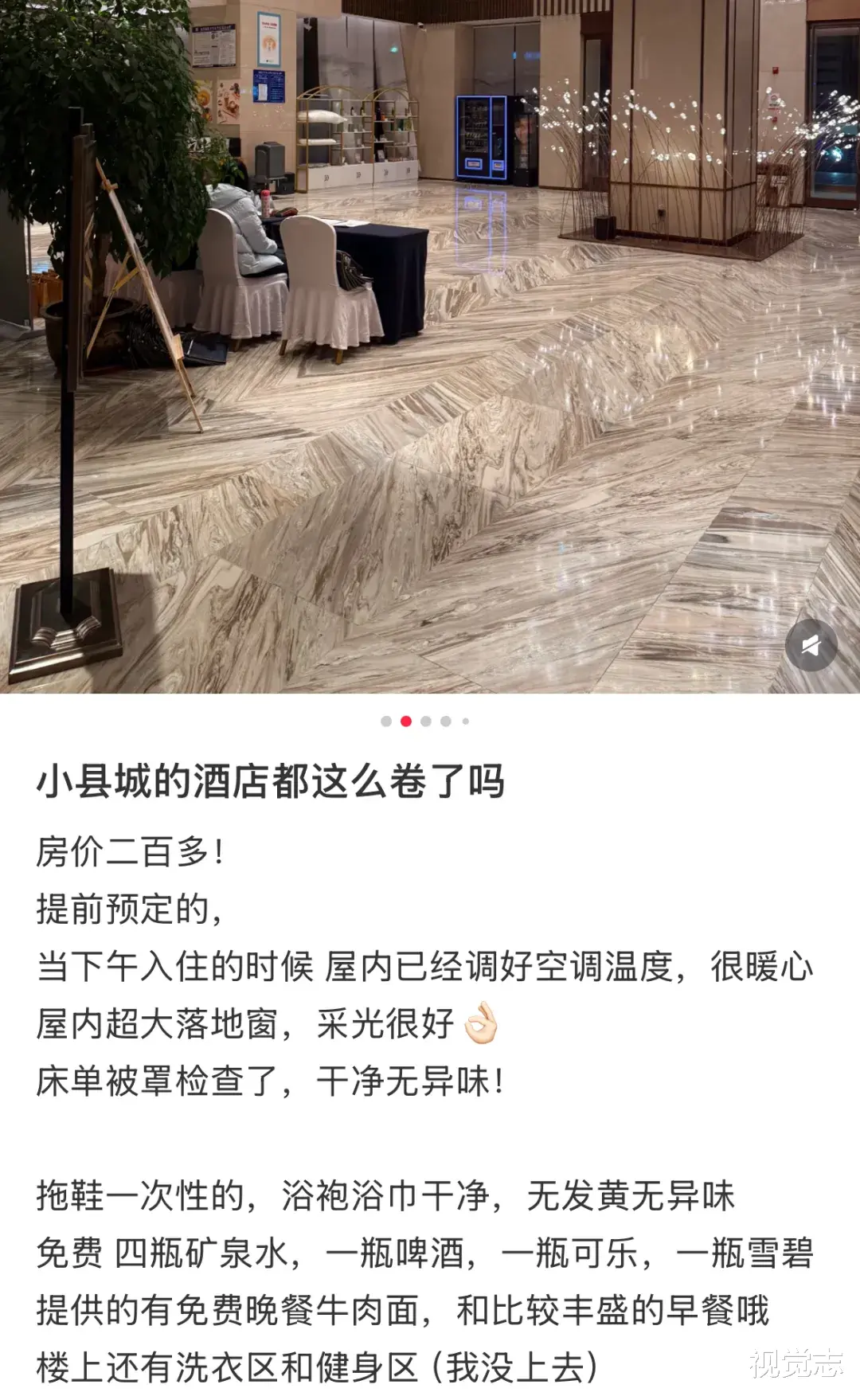有人入住县城酒店后发现,堪比五星级酒店的品质,房价只要二百多,顶楼还有免费的室内泳池,供自己随意使用。