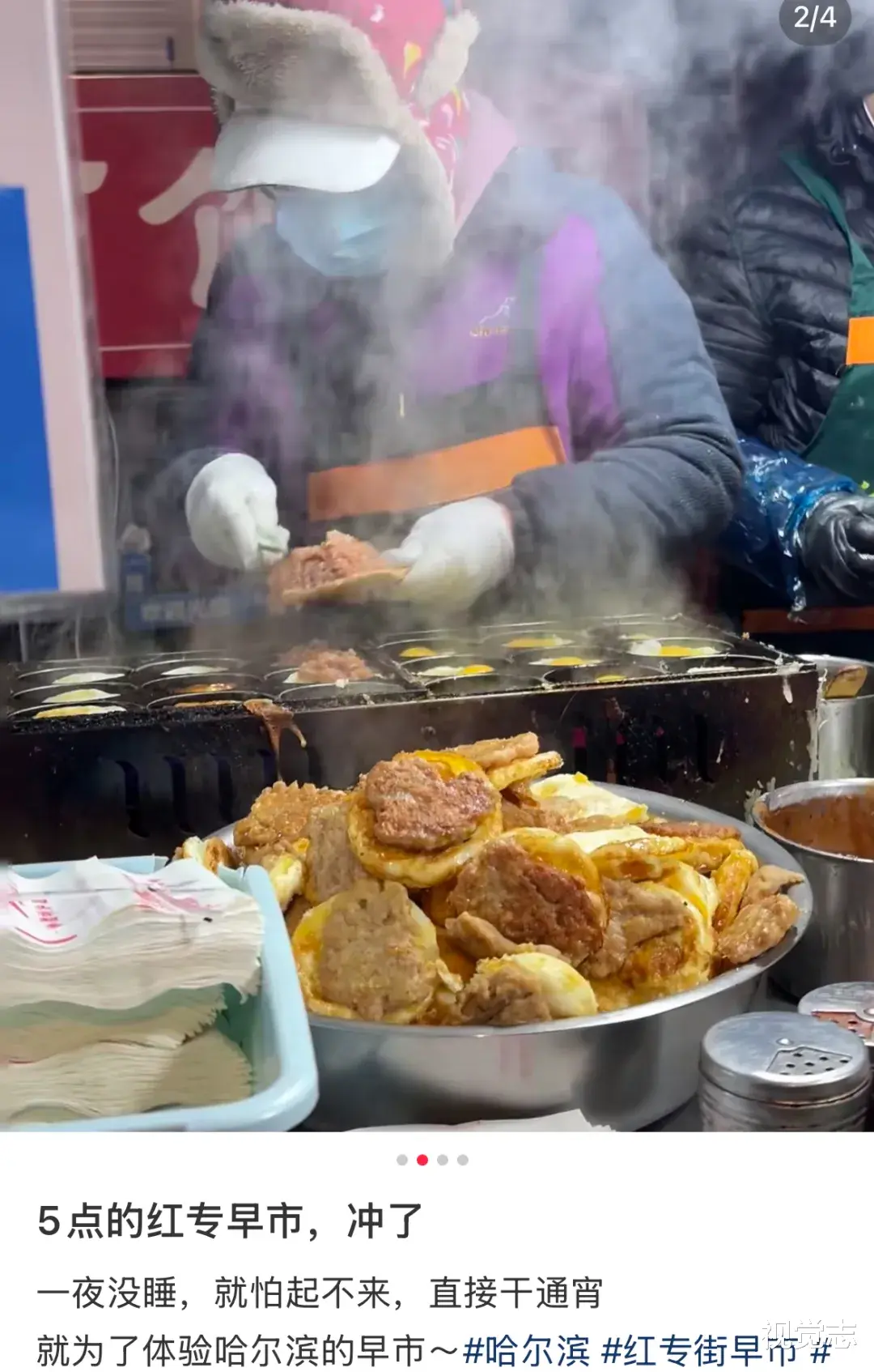 而在东北的黑河早市,则是另一番热闹景象。晨光微露,昨夜的白雪还未消融,但手工馒头、鸡蛋汉堡、蓝莓、冻梨等摊位前,已然排起了长队。