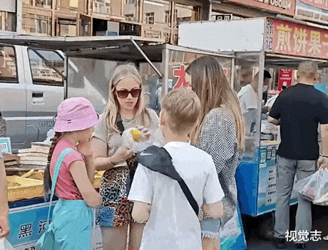 望不见尽头的队伍中,不仅有来自全国各地的年轻游客,还有着一河之隔的俄罗斯年轻人,他们同样热衷于赶集,每天一大清早,便会组团划着小气垫船,穿过江面,只为体验这独具特色的东北早市,堪称「想东北的风,吹到了俄罗斯」。