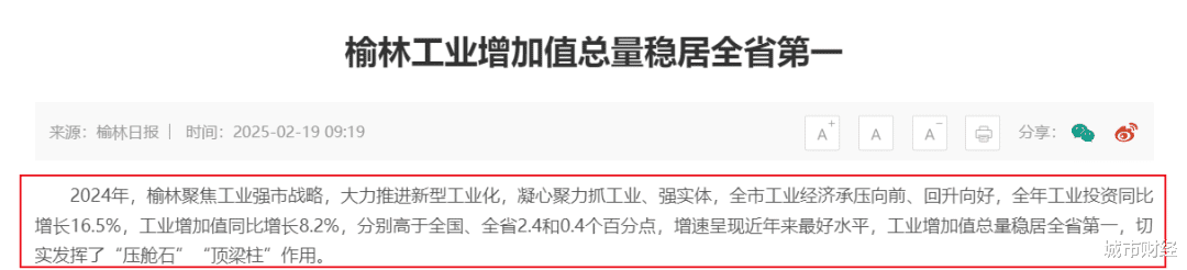 在煤炭资源加持之下,榆林除了是陕西的经济第二城之外,还是陕西的工业第一城。