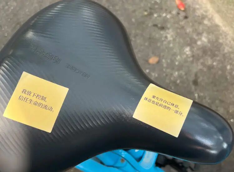 “风声呼啸/那是单车在为你叫好”“只要脚一蹬/我就拥有了这世上/兜不完的风”“要允许自己休息,休息也是前进的一部分”。如果共享单车上出现的是这些暖心诗句,而非不堪入目的小广告,你的骑行体验是否会加分?