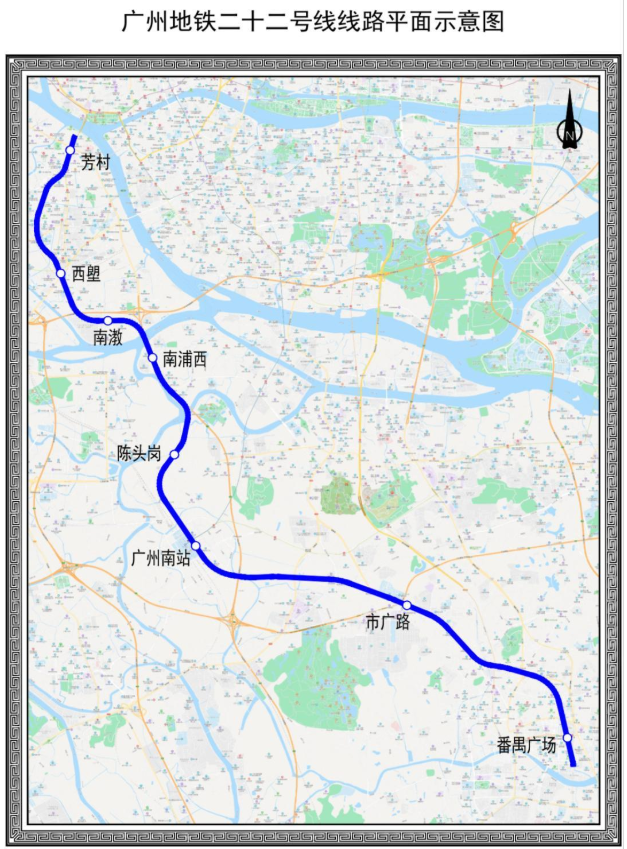 据了解,广州二十二号线全线开通后,从芳村站到番禺广场站全程约27分钟,将实现番禺与荔湾的快速轨道交通联系,有效串联起番禺广场、广州南站、广钢新城、白鹅潭等核心商务区和综合交通枢纽。