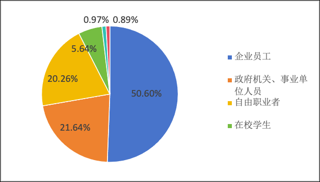 中青年在职群体是网约车服务的消费主力。报告数据显示,九成多(99.37%)受访者有过网约车消费经历。网约车消费经历的受访者中,年龄在18-45岁之间的中青年人占到近八成(78.39%),企业员工(50.60%)、政府机关及事业单位人员(21.64%)、自由职业者(20.26%)等在职人员占比超过九成(92.50%)。