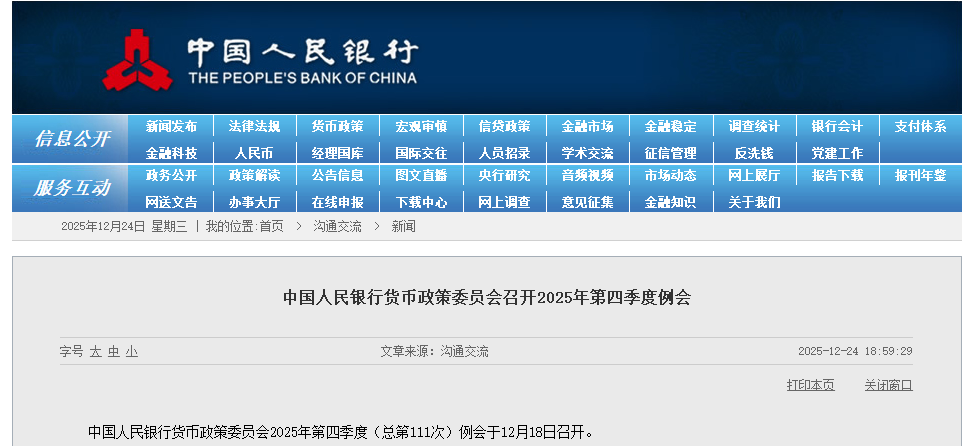 据央行12月24日公告,中国人民银行货币政策委员会2025年第四季度例会于近日召开,会议对当前经济形势作出新判断,并部署下一阶段货币政策方向。与第三季度例会相比,本次会议在延续“适度宽松”总基调的基础上,新增了“跨周期调节”和“发挥增量政策和存量政策集成效应”的提法;在支持方向,会议强调加强对扩大内需、科技创新、中小微企业等重点领域的金融支持,同时继续维护资本市场稳定,但未再单独提及房地产和稳定外贸。