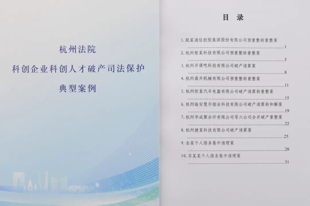 杭州市中级人民法院精选10件科创企业科创人才破产司法保护典型案例同步发布,这批案例涵盖破产重整、清算、和解、个人债务集中清理等多种类型。