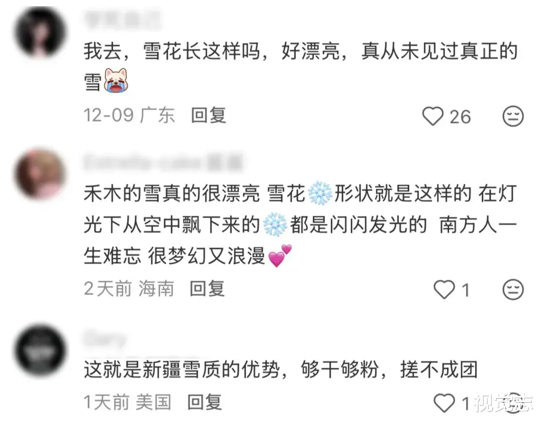 如此标准的雪,对于许多地方的游客而言,它原本只存在于课本与动漫里,当它真实地出现时,所有人都忍不住惊呼:“语文老师诚不欺我,真的有六瓣雪花。”