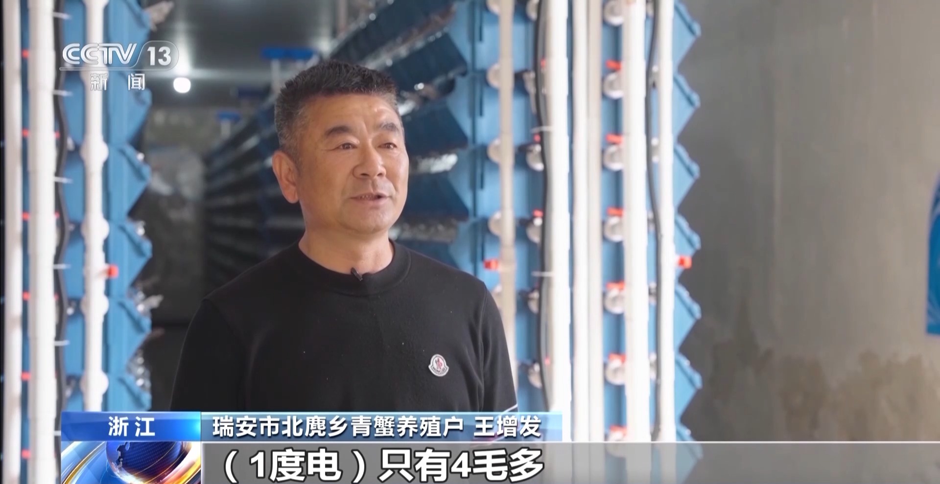 瑞安市北麂乡青蟹养殖户王增发:绿电引进的话,我们的青蟹养殖成本大大降低了,1度电只有4毛多,以前要9毛多,相差一半多。