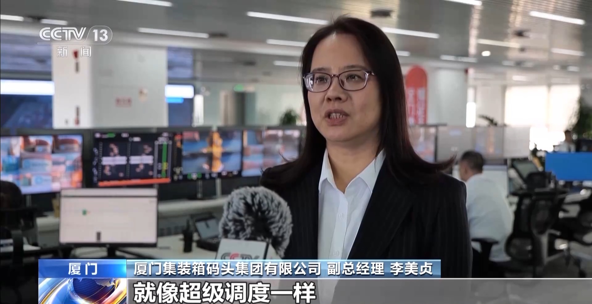 厦门集装箱码头集团有限公司副总经理李美贞:“智慧大脑”指挥系统,就像“超级调度”一样,能自动为拖车优化路径,提升码头作业效率,减少不必要的能源消耗和排放。