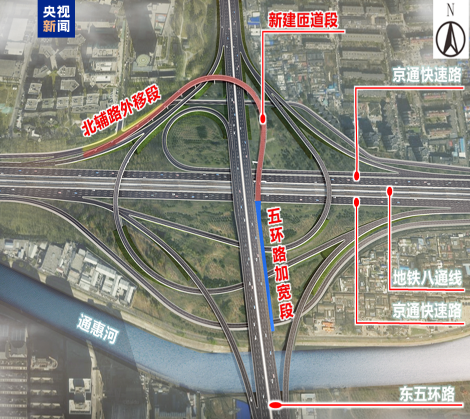 新匝道通车后,将进一步完善远通桥互通区的交通转换功能,提升城市副中心与中心城区的联络效率。东五环与京通快速路将实现全方向互通,经远通桥进京车辆可减少绕行距离约5.6公里,节约通行时间约15分钟,将显著提升广渠快速路、京哈高速等东部路网的通达性,进一步强化城市副中心与中心城区的交通联络效率,为区域经济社会发展提供有力支持。