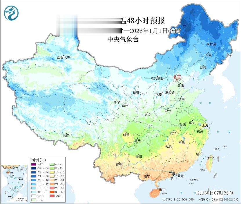 受冷空气影响,今晨,内蒙古中东部、东北地区气温下降4~8℃,局地降温幅度达14~18℃。预计12月30日至1月2日,将有强冷空气影响我国,东北地区、西北地区东部、黄淮西部及江淮以南大部地区降温明显,部分地区降温幅度达10℃以上。