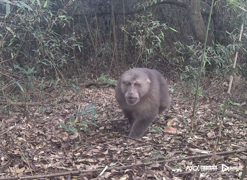 近日,广东连南板洞省级自然保护区对安装在保护区内的视频监控素材进行收集,发现安装在野外的一个监控视频拍摄到了一只深棕色猴子。视频画面中,一只成年猴子从林间缓缓走过,约10秒后消失在视频监控画面中。经相关专家确认,该猴子为国家二级保护动物藏酋猴。