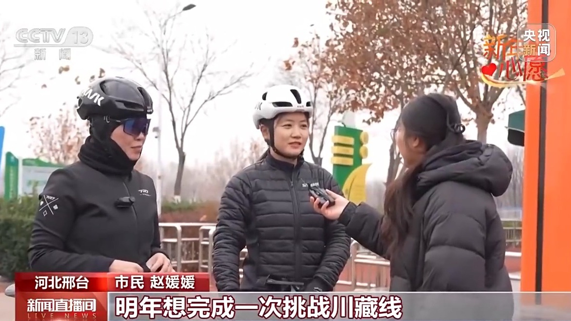河北邢台市民赵媛媛:明年想完成一次挑战川藏线或者是环青海湖这种长途骑行。