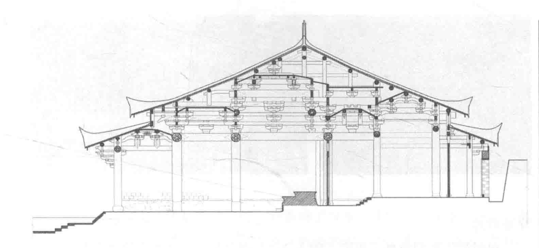 五台山南禅寺大殿(唐)剖面图。