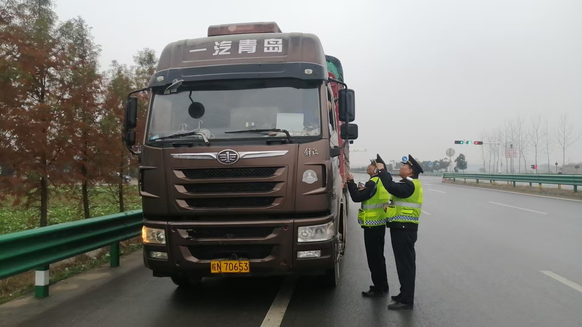 时值岁末,辖区国省道遭遇严寒天气,雨雪交加、道路湿滑,给道路运输安全带来严峻挑战。执法人员闻令而动,不畏风雨严寒,第一时间奔赴国省道开展道路巡查、执法纠违。同时,执法人员主动关心司乘人员,耐心提醒:“年关将近,道路湿滑,车流增大,务必减速慢行,切勿疲劳驾驶,前方马头检测站工会驿站有休息场所,有热茶热水供应,您可以进去歇歇脚,休息一下。”