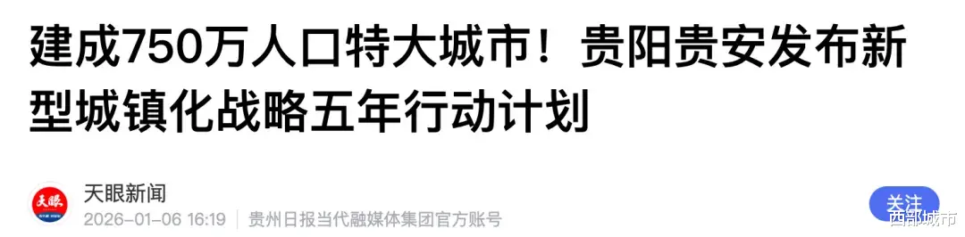 如果实现的话,贵阳也将成为整个西部地区,继重庆、成都、西安、昆明之后,第五座超大特大城市。