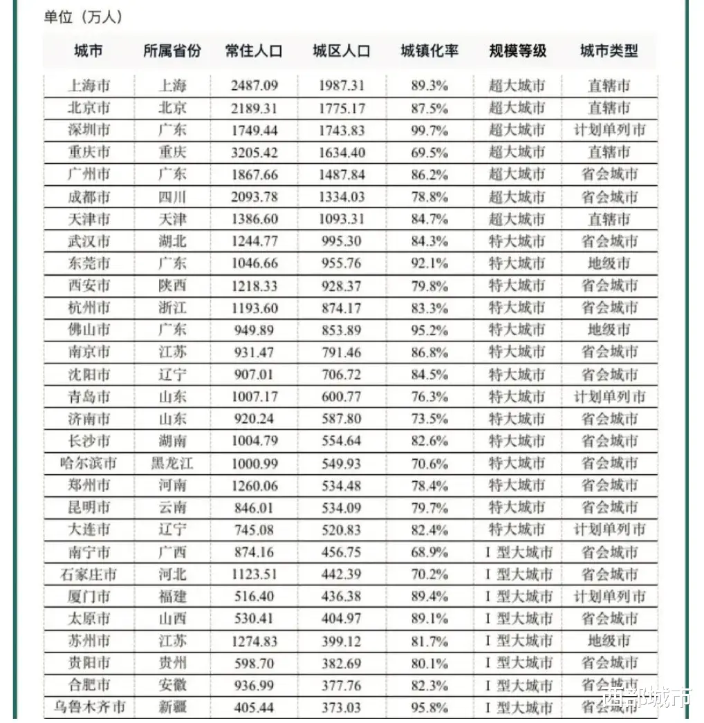 要注意的是,这里的人口规模是指城区常住人口,而不是全域常住人口,也不是城镇常住人口。