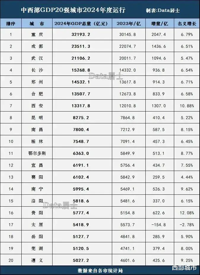 2024年,贵阳与南宁的GDP差距仅有200亿左右。未来几年,贵阳经济总量会否反超南宁,将是省会城市竞争中最具看点的存在。
