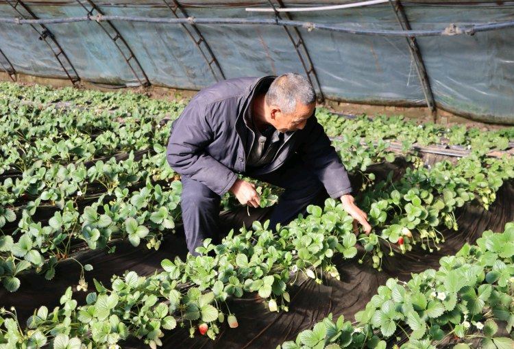 科技大棚硕果盈枝的同时,传统农户大棚里同样是一派丰收景象。位于迎宾路街道河西村李家阴湾小组的设施农业区,又是另一番热闹景象。村民李文宽正在自己的草莓大棚里忙碌,他小心翼翼地为植株清理老叶,查看果实成熟度。棚内温暖如春,蜜蜂在花间嗡嗡授粉,成熟的草莓在绿叶的衬托下格外诱人。