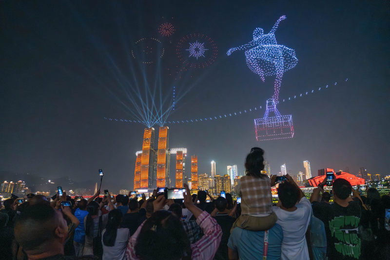 《无人机灯光秀》2025年5月5日,摄于重庆市南滨路两江汇。