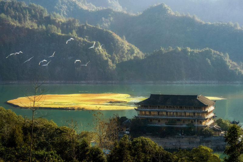 《寨畔湖光》2025年3月22日,摄于重庆市酉阳土家族苗族自治县河湾山寨。