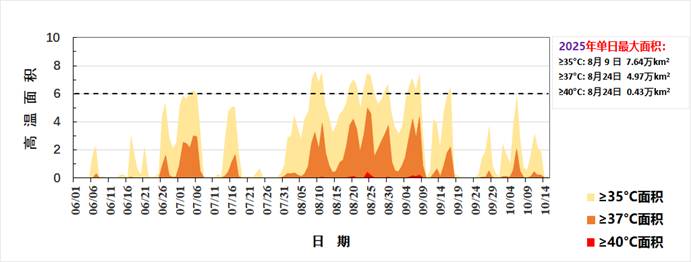 2025年全省逐日陆域高温覆盖面积(6月1日-10月15日)。省气象局供图