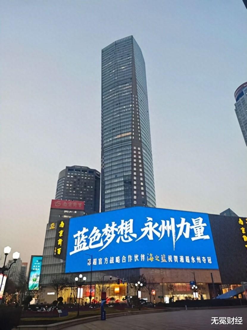 洋河直接借着这股东风,把南京地标变成自己的官宣舞台:亮起“蓝色梦想永州力量”显眼标语,恭喜永州后面紧跟着“2026苏超见”,官宣了自己的新身份——2026苏超官方战略合作伙伴。