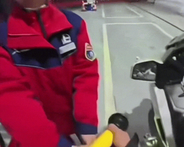 工作人员阻止男子的加油行为。图源:视频截图
