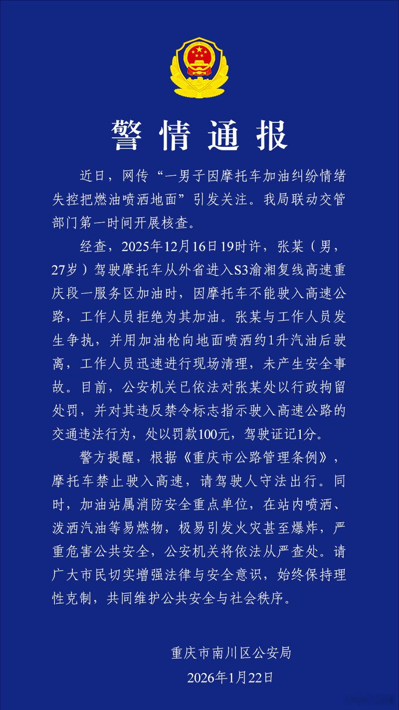 一则“男子因摩托车加油纠纷