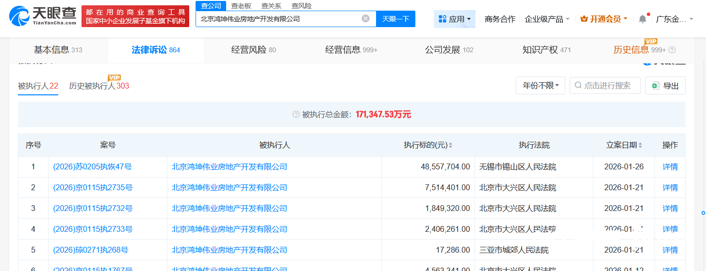 鸿坤广场所涉企业被列为失信被执行人