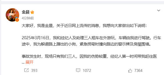 大家好,我是金晨,关于近日网上流传的消息,我想向大家做出如下说明:
