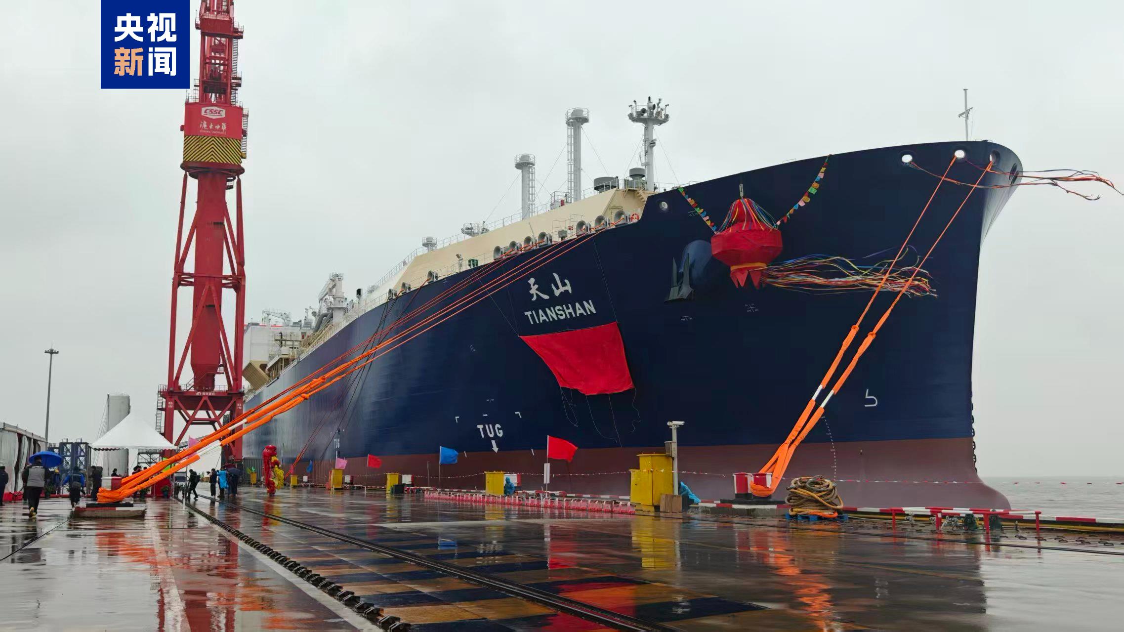 1月30日上午,由中船集团沪东中华自主研发建造的17.4万立方米大型LNG运输船“天山”轮在边检机关等口岸单位的保障下,于上海长兴岛沪东中华码头顺利交付。