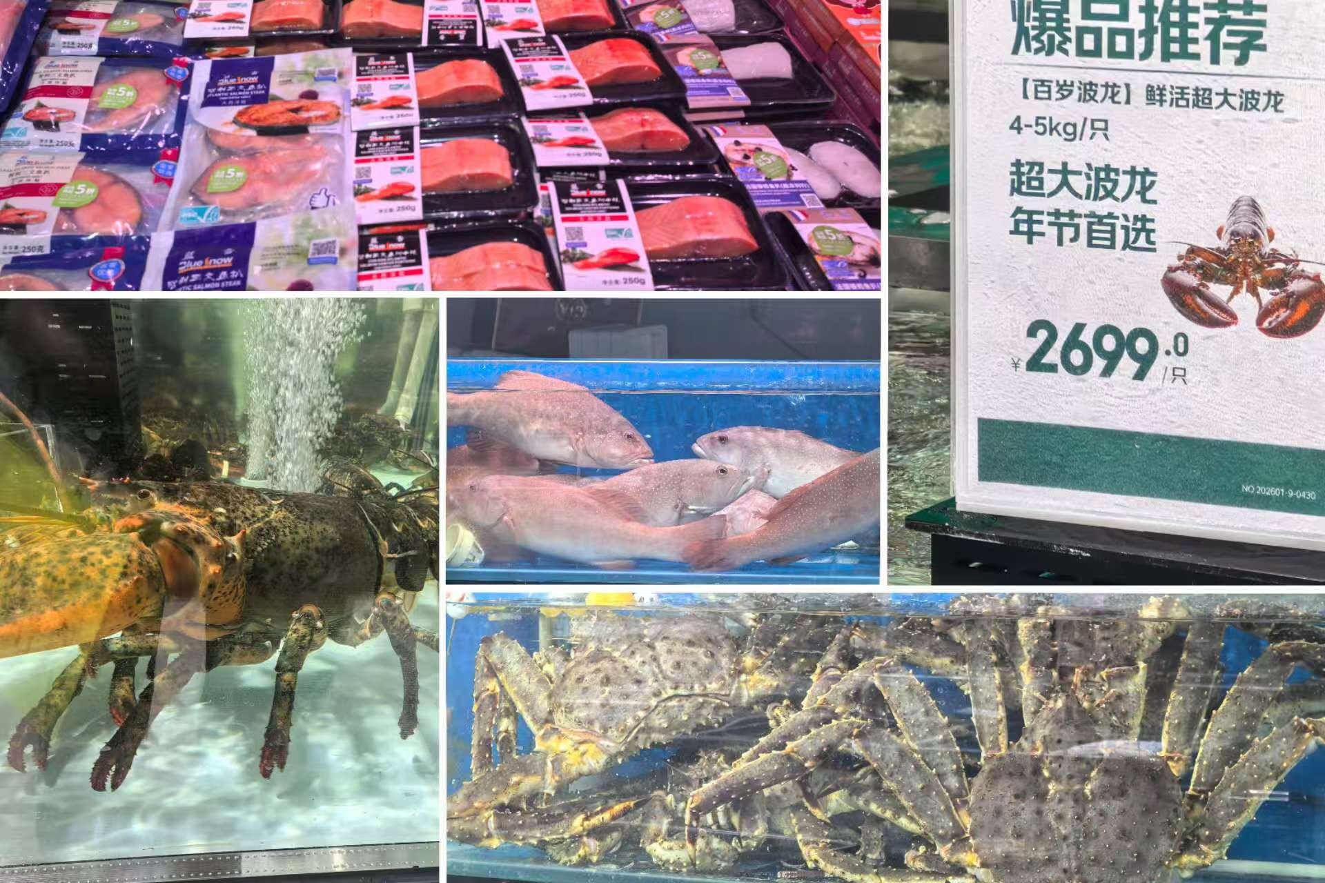 “昨天我在海鲜批发市场做了一个简单调研,基围虾、龙虾、帝王蟹、雪蟹……很多高端海鲜的价格都大幅上涨,有的直接翻了两倍。三文鱼批发价较上年同期略低,但也环比上涨了20%—30%。这些水产品虽然价格走高,但依旧是年货热门。”味库海鲜销售副总裁王传发表示,“像我们本月三文鱼的进口量环比增长超过200%,海鲜年夜饭礼盒销量也增长了300%。”在他看来,春节是中国人最重要的时刻,而要在重要时刻“吃好点”的需求,也推动高端水产进入消费旺季。