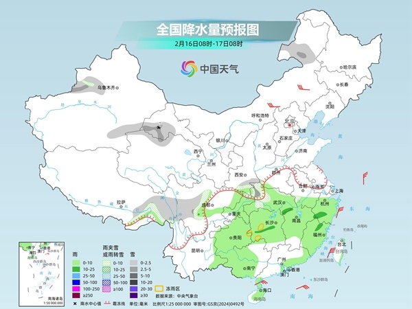 后天,新疆伊犁河谷、甘肃河西、青海北部、西藏东部、川西高原中南部、内蒙古东北部、陕西南部、湖北北部和西部等地部分地区有小到中雪或雨夹雪,其中,甘肃河西局地有大雪;湖南西部、贵州东部等地局地有冻雨;西南地区东部、江汉南部、江南大部、华南西部和东南部、海南岛大部等地部分地区有小到中雨。