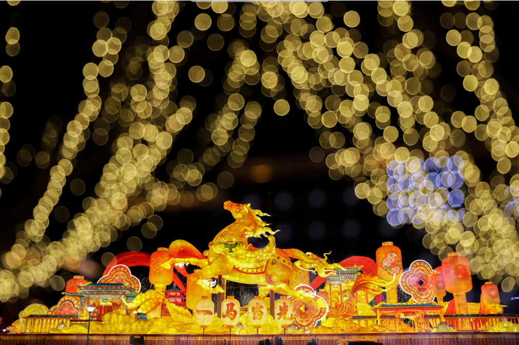 逢年过节,灯会自然少不了。位于四川省成都市龙泉驿区的第55届成都国际熊猫灯会现场,330亩湖岛内,上万盏华灯与粼粼波光相映,巨型灯组气势恢宏,熊猫IP灯组憨态可掬,传统灯彩与现代光影科技碰撞出浓浓年味。