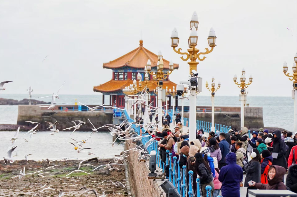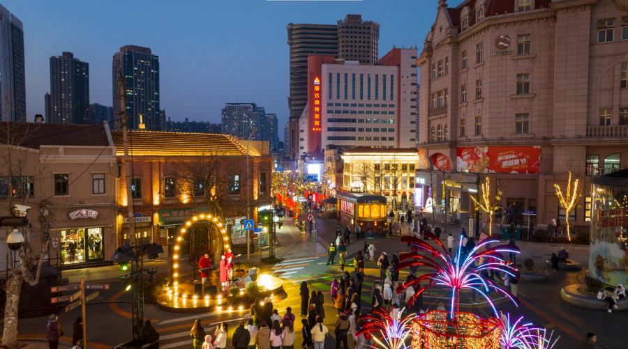在这里,游客既可品尝糖球、脂渣等美食小吃,欣赏里院建筑上投射的时光影像,也能在喂海鸥、赏海景中感受冬日青岛的浪漫。这种将建筑、历史、科技与自然景观无缝衔接的做法,让老街里“活”了起来。