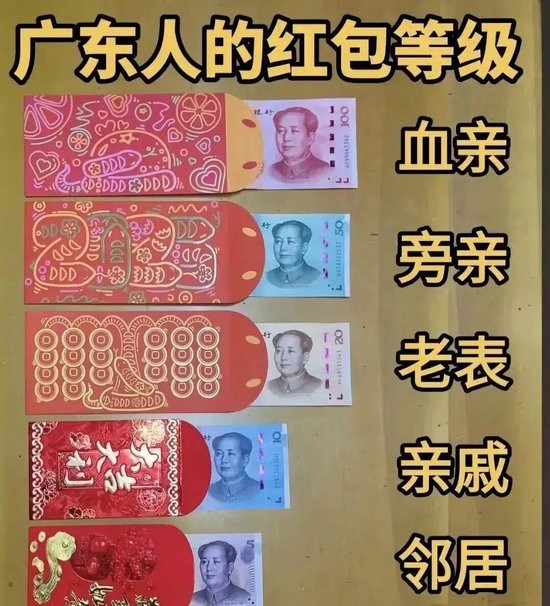 近日,一张标注“血亲100元、旁亲50元、老表20元、亲戚10元、邻居5元、拜神2元”的广东利是金额参考图,在各社交平台上走红,相关话题迅速引发全网关注。这张分级金额图是广东网友结合珠三角、粤东粤西粤北多年派利是的习俗,自发整理的民间参考图。