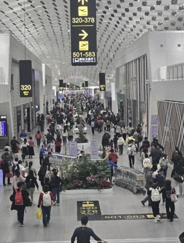 2月18日,有网友晒出18日凌晨5点半深圳机场人头济济的画面。