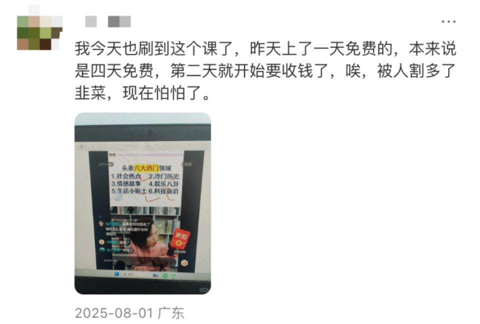 在卖课直播间里,看主播展示麾下学员一天就赚成千上万后猛猛动心。