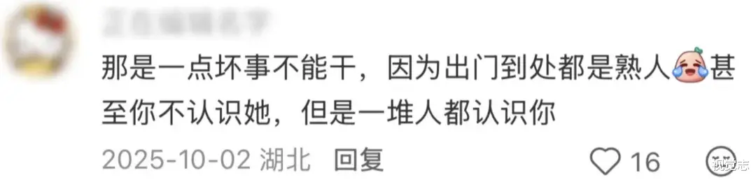 这种随时随地偶遇熟人的经历,导致人们回到县城后都不敢在公共场合聊八卦,生怕周围的某个人恰好认识自己八卦的对象。