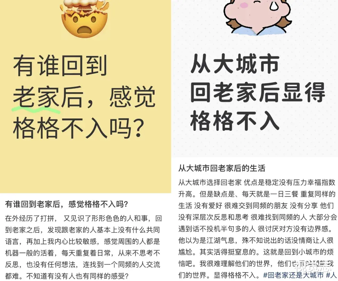 可当我们翻开社交平台,会看到许多人已经开始后悔了。他们之所以后悔,并非是县城不够安逸、也并非县城找工作太难,而是因为格格不入。