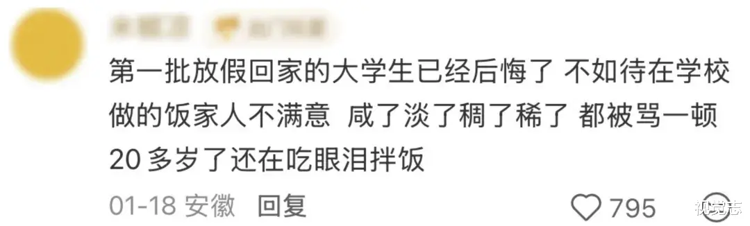 “第一批放假回家的大学生,已经后悔了。”