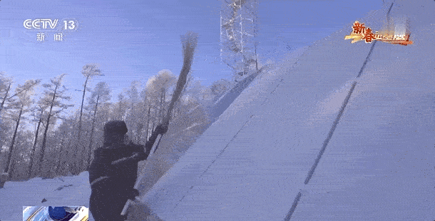 清扫完路边的几个基站,下一站是建在山顶的瞭望塔。柴瑞峰驶入一条更窄的林间雪路,车没开多久,一大块“冰包”就横在车前。这是林区特有的现象:暖泉水流到路面,一层层冻结形成。柴瑞峰停下车,拿起后备箱中的铁镐开始凿冰。