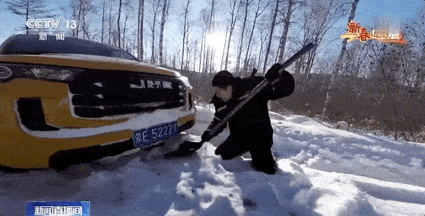 林区不仅有冰道,还有暗藏的松软雪层。尽管柴瑞峰一直小心驾驶,但在一处弯道上,他的车还是陷进了雪地中。他取出铁锹从车轮下挖了十几分钟雪,车子才终于摆脱困境。