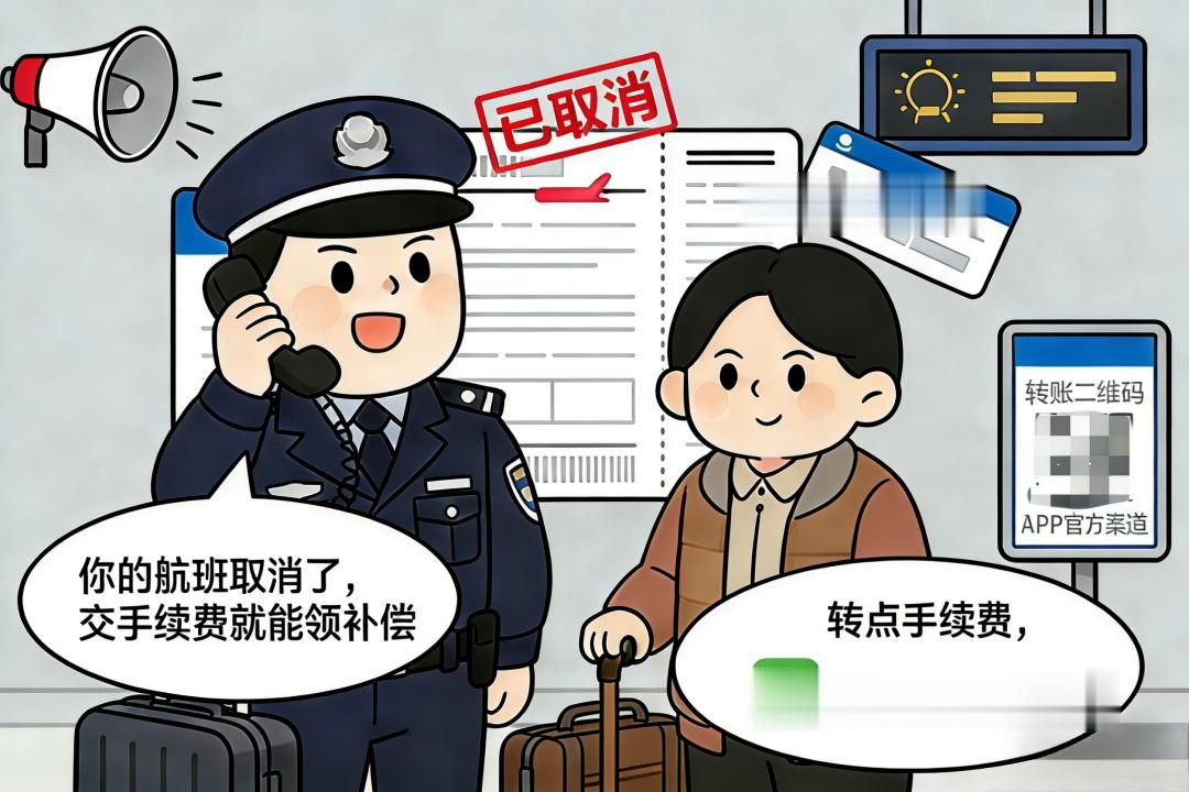 识别要点:航班退改签要在航空公司官网、官方APP或正规售票平台操作,陌生电话要求交手续费的,一律不信。