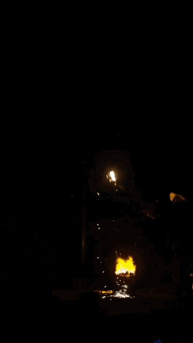 一次火龙灯舞,约有十几分钟,队员们冒着被烫伤的危险,无数次在上千度的铁水中穿行,也呈现出最华丽耀眼的场景。
