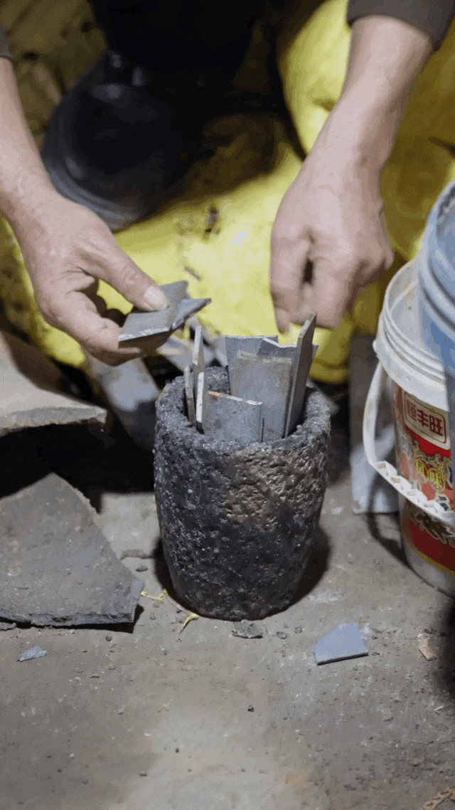 看大家糊黄泥、鼓风机、烧铁水,